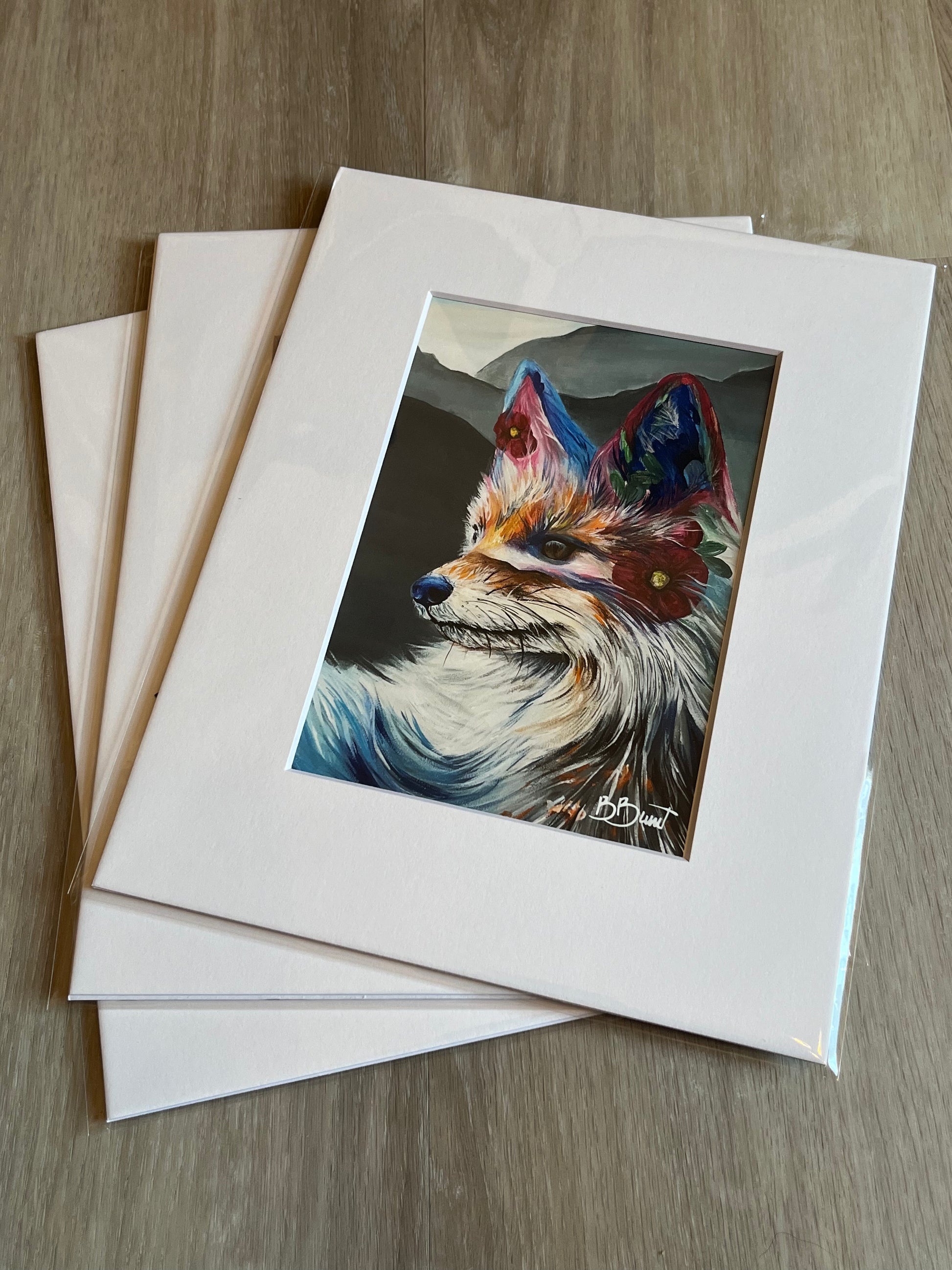 These giclee prints are high quality, wide color range, smooth gradations, and detailed, vibrant color reproductions. They are produced on a thick matte paper with a subtle watercolor texture.