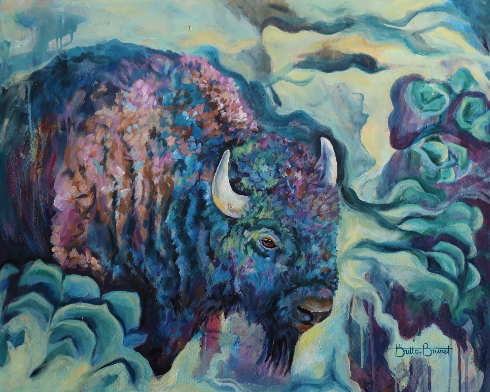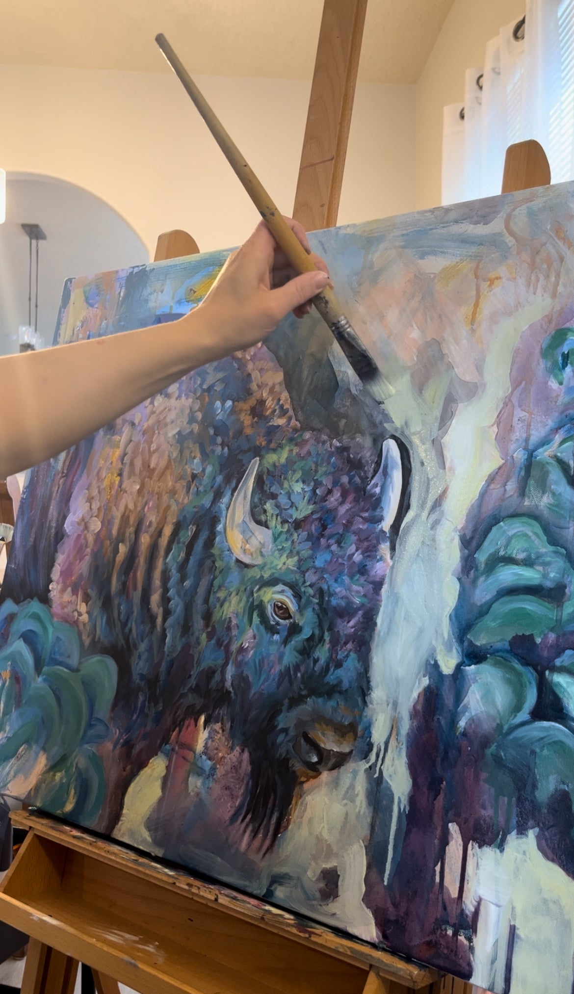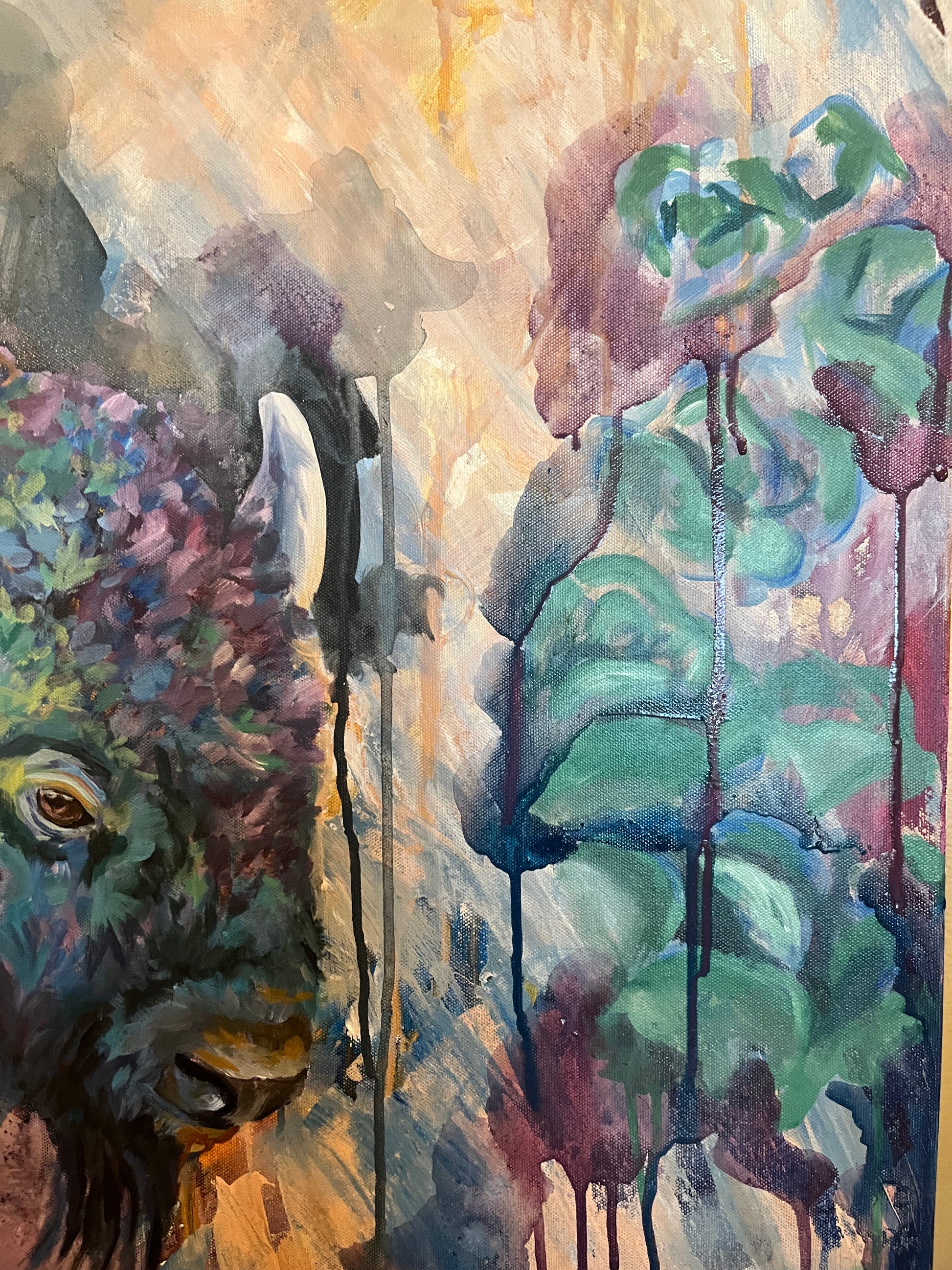 This abstract depiction of a buffalo amongst the vibrant succulents reveals a treasured moment where I truly began to discover myself as an artist. This piece is very near and dear to my heart.